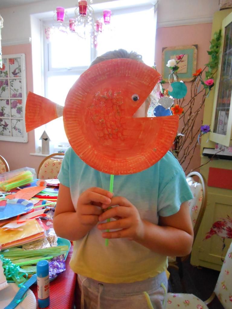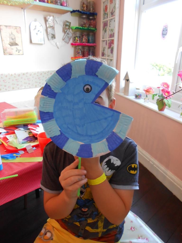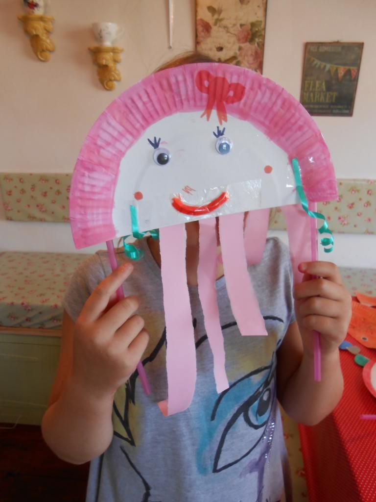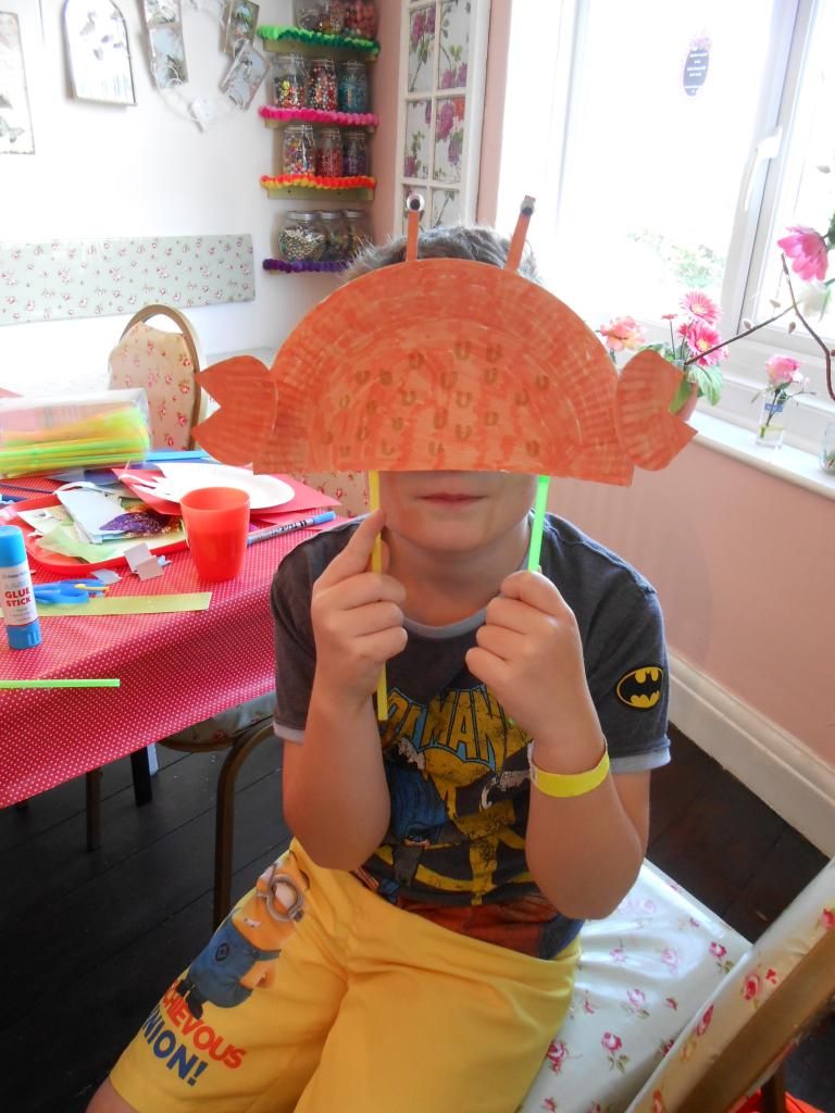 We had a great morning at the crafty kids club today! The theme for this Summer is the seaside and we decided to make animal paper plate masks with this theme in mind. Everyone made some great masks including fish, crabs and jellyfish covered in lots of super materials that really made them stand out.